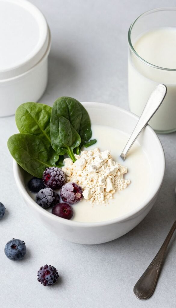 When you’re on the go, this is your secret weapon. Blend a scoop of whey or plant-based protein powder with a handful of spinach (you won’t taste it, promise!), unsweetened almond milk, and a tiny bit of frozen berries for sweetness and thickness.